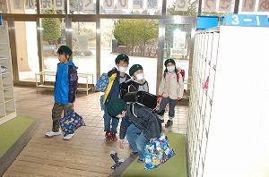 お家の人と一緒に教室に入ったあとは,お家の人は一足先に体育館へ,