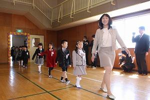 いよいよ入場です。ちょっと緊張している子どももいましたが,みんなにこにこ元気です。