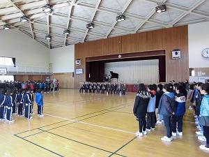 1年生が、プレゼントを渡しました。 みんなで歌をプレゼントしました。