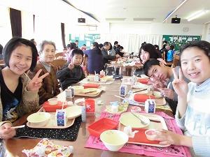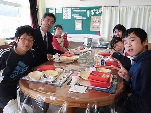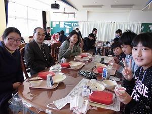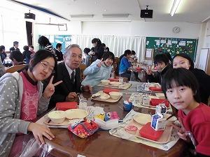 交通安全感謝の会後、お招きした方々と6年生で給食を食べました。