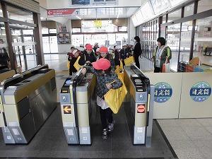 2月19日に生活科の学習で電車に乗り,今市図書館に行きました。子供たちは,自分で切符を買い,改札口を通って電車に乗りました。初めて自分で切符を買った児童が多く,切符が券売機から出てきたときにはうれしそうでした。車内では,窓から見える景色を見ながら友達と会話をはずませていました。