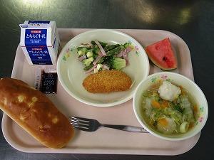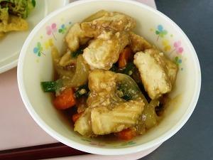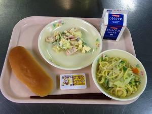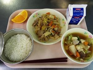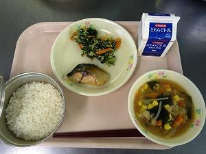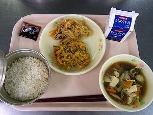 たんぱく質の多い給食ですが、野菜も魚も肉も使った、