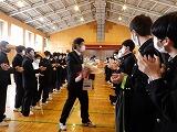 卒業式終了後、在校生に見送られた3年生は、体育館で写真撮影を行いました。