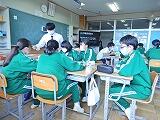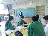 5校時は1組、6校時は2組が、和服の基本的な名称に始まり、浴衣の着方やたたみ方、浴衣を着た際の正式な挨拶の仕方について、先生方から丁寧に教えていただきました。