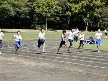 「新記録目指して頑張りましょう」 いました、落中生チーム。 1年男子、走幅跳。