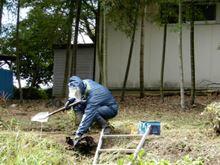 杭打ち気をつけてね。「そーれ、そーれ」悔いの残らないよう思い切り打ち込んでください。校庭への階段も新設。