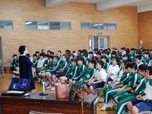 午後の部は、保護者も参加して式典を実施しました。クラスの代表4人が将来の志を発表しました。その後、