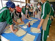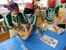 「よろしくお願いします」     ボランティアの皆さんにご挨拶。    まずは、生地作りから。