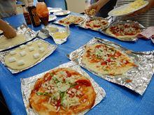 ピザ作りに戻って。          ウィルバートさん初めてなのに   トッピングを乗せたら・・・