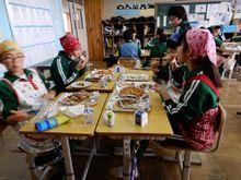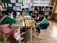 3年生最後の給食は、お赤飯と唐揚げ。とってもおいしくいただきました。
