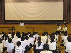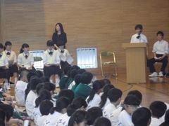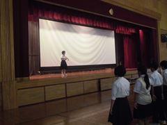 演奏でした。演奏後、部長、副部長が 「校内に遊歩道があることです」 「美人でとても優しい 先生です」