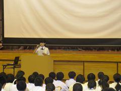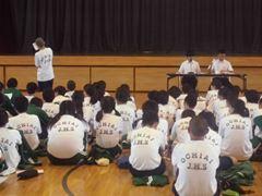 団長あいさつ 「絆をたいせつに」 落合中からは3人が参加しました。C班