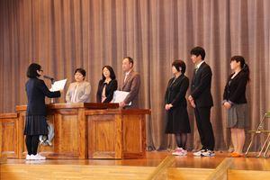 続いて、PTA総会。 旧役員の方々。ご苦労様でした。 職員紹介。「タケノコが旬です」