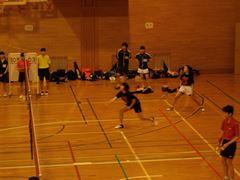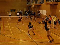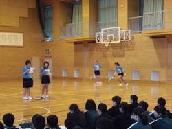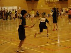 バドミントンは落合中学校体育館。 決めろ、スマッシュ。 女子個人戦優勝、おめでとうございます。