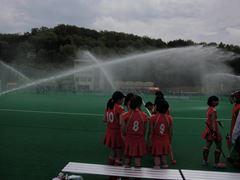 水しぶきが気持ちいいですね。 女子チームは落合・豊岡合同チームです。 相手は高畠・米沢・川西チーム。完勝でした。