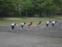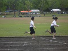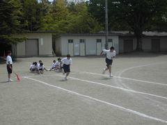 3年女子100m。決勝に2名が進みました。 最後の競技は100m×4リレー。 上手にバトンを渡しました。