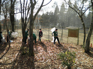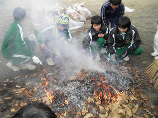学校林の中での落ち葉拾い 焼き芋