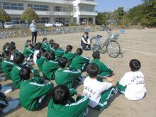 絶好の交通安全教室日和です。 生活安全課とトラック協会の方が来校されました。