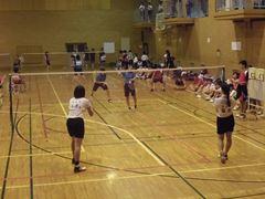 まずは、落合中学校体育館。暑い中、窓も開けられません。男子も女子も文字通り熱戦が繰り広げられました。