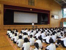 市長あいさつの後、落合中学校は3番目に発表しました。立派な態度です。