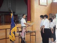 団長あいさつ 「絆をたいせつに」 落合中からは3人が参加しました。C班
