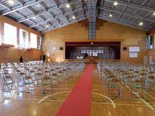 会場も完成・・・ 「これから卒業生が入場します」 ドアマン開けてください・・