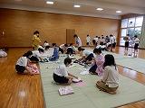 講師として、田澤ひめ先生、上吉原美知代先生、渡邉未歩先生の3名の先生方にお越しいただき、1組は5時間目、2組は6時間目を使って、浴衣の名称や着方、たたみ方等について、丁寧に教えていただきました。