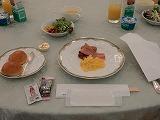 3 バスから猪苗代湖が見えました。昼食は、会津ワシントンホテルにおいて包みハンバーグをいただきました。