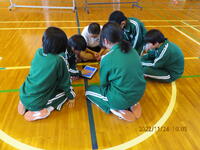 本時はハンドボールの授業の8時間目で、「スペースを利用した攻撃をするために、ボールを持たないときの動きについて考えよう。」というめあてに従い、動画を撮影したり、その動画をもとに話し合いをしたりと、各グループが協力し真剣に授業に臨みました。