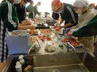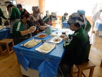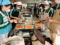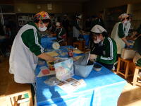 今日は3年生のために、ピザ焼きに5名、生地づくり等に6名の地域のボランティアの皆様が応援にきてくださいました。生地から作ったピザ、自分のためにきれいにトッピングしたピザ、釜で焼いていただいたピザ、今日のピザの味は格別であったことと思います。