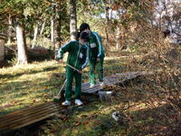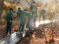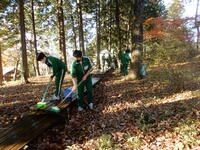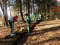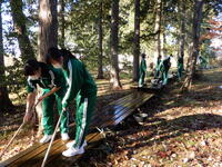 11月25日(金)の午後3年生は、緑が丘活動に取り組みました。遊歩道の木道部分に水をまき、デッキブラシできれいに磨いたり、遊歩道内の枯れ枝や木を校庭東側の敷地に移動したりしました。全員が最後まで一生懸命仕事をしてくれたおかげで、とてもきれいになりました。