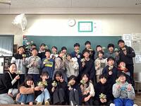 親子学習で作成したコサージュを持ってクラス写真を撮影しました!