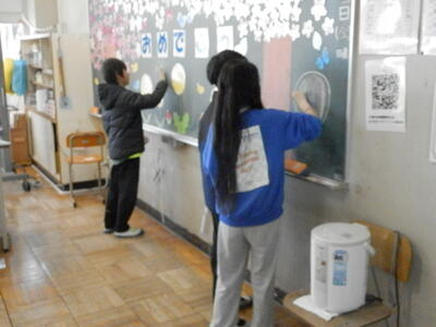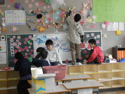 明日は、卒業式です。午後は4・5年生が協力して、卒業式の準備を行いました。