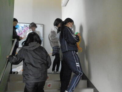 校舎内は、クリスマスの飾りや掲示物であふれています。