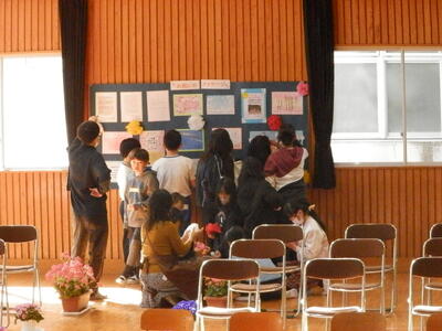 全校生でのジェスチャーゲームをしたり、思い出のスライドショーを見たりして、みんなで思い出を振り返りました。特にスライドショーでは、入学式の幼い姿や修学旅行の楽しむ姿が映し出されました。6年生は照れくさそうに、でもどこか誇らしげに、自分たちの成長を見つめていました。また、下級生から6年生へ、そして6年生から下級生へ、手作りのプレゼントを贈りました。