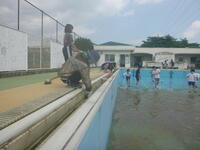 5,6年生がプール清掃を行いました。今年は学校支援ボランティアの方々にも御協力いただき、排水溝やプールサイドの隅々まできれいにすることができました。ありがとうございました。来週のプール開きが楽しみです。