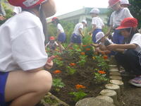 4月に1・2年生が種をまいたマリーゴールドがすくすくと成長し、ボランティアの方々と一緒に花壇への植え替えを行いました。これからたくさんの花を咲かせ、校庭を華やかに彩ることでしょう。
