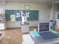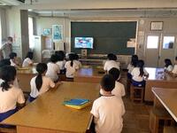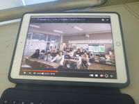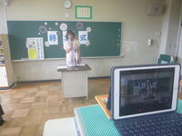 【リモート配信による校長講話】                         【教室での様子】