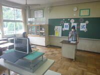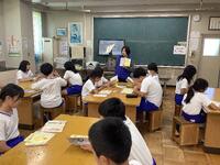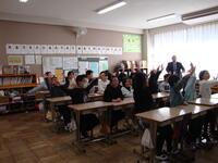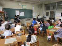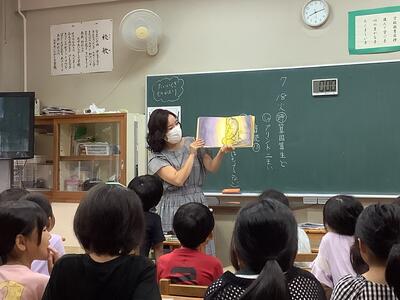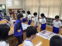 ボランティアの川島さんにお越しいただき、『へいわとせんそう』という絵本の読み聞かせをしていただきました。また、戦争時の子供たち、現在の子供たちを比べ、1年生と対話をしながら、分かりやすくお話をして頂きました。戦争をしている人たちは同じ人間同士なのに、どうして争いをしていしまうのでしょうか・・・。平和に生活できる幸せに気付いていた子がたくさんいました。
