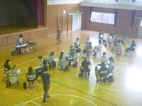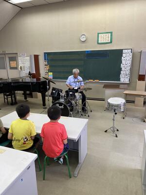 担当教員が中学から続けてきたドラムの演奏を聴きました。また、手と足でリズムをとる体験を通して、音楽の楽しさや、好きなことを続ける大切さについて気づいていました。