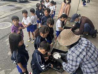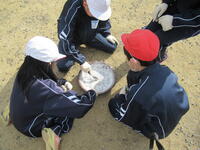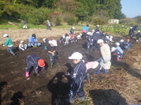 5月に植えたサツマイモの苗がすくすくと成長し、いよいよ収穫の時を迎えました。様々な形、大きさのサツマイモを掘り出すたびに「すごい!すごい!」と大はしゃぎの1・2年生です。どうやら苗植えの時の「おまじない」が効いたようですね。畑の管理から本日まで御支援いただいたボランティアの皆様、ありがとうございました。