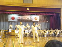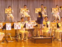 第2部は栃木県警音楽隊・カラーガード隊による記念コンサートが、和やかな雰囲気の中行われました。楽器の紹介や防犯講話、音楽に合わせたダンスなども取り入れた盛りだくさんの内容です。指名された児童が指揮者として演奏をリードする場面もあり、最後は、音楽隊の演奏による本校校歌の斉唱で締めくくられました。