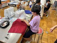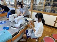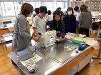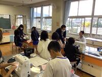 5年生の家庭科の授業でランチョンマットを制作しています。初めてミシンを使っての学習ですが、