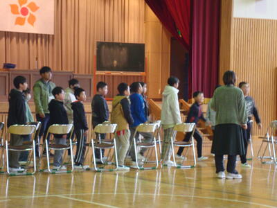 明日は、入学式です。5校時に6年生が中心となって、準備をしました。