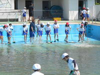 今年度の水泳の学習が始まりました。まずはプール清掃を頑張った5・6年生から入水です。曇り空ではありましたが、子供達の元気な声が響いています。事故やけがなくシーズンが終えられるよう、安全第一で活動していきたいと思います。