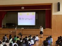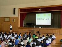 「徳を積む」という言葉についての話をしました。よいことをたくさんすると、自分に返ってきます。逆に、悪いことも自分に返ってきます。担当職員は、駐車場に落ちていたお菓子のごみを拾ったそうです。子供たちの周りにも、自分から気付いてできそうなことがあると思います。小さなことから始めてみましょう。