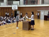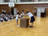 1学期の終業式が行われました。式に先立って、文挾駐在所の藤田様から、水難事故防止についてのお話をいただきました。明日からいよいよ夏休みです。楽しい思い出をたくさん作って、2学期の始業式には、一回り成長した元気な姿を見せてください。