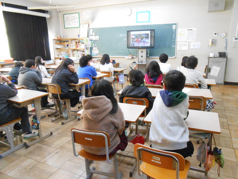 代表児童による2学期の振り返りや3学期の目標についての発表の後、2学期の行事を中心に写真を示しながら、本校校長から児童に向けて話をいたしました。各教室では、一人一人が83日間の2学期を振り返るとともに、本年のよい締めくくりができるよう考えを深めていました。