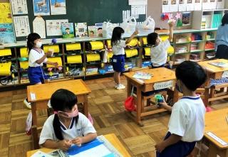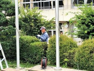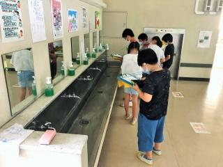 明日と明後日は分散登校日です。楽しみですね。子供たちの登校に向けて、教室やてすり、トイレなどの消毒を行いました。元気な登校を待ってます。