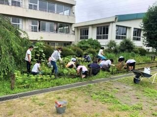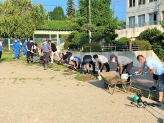 朝早くからたくさんの保護者と児童が集まってくれました。暑い中の作業で大変でしたが、おかげ様でとてもきれいになりました。
